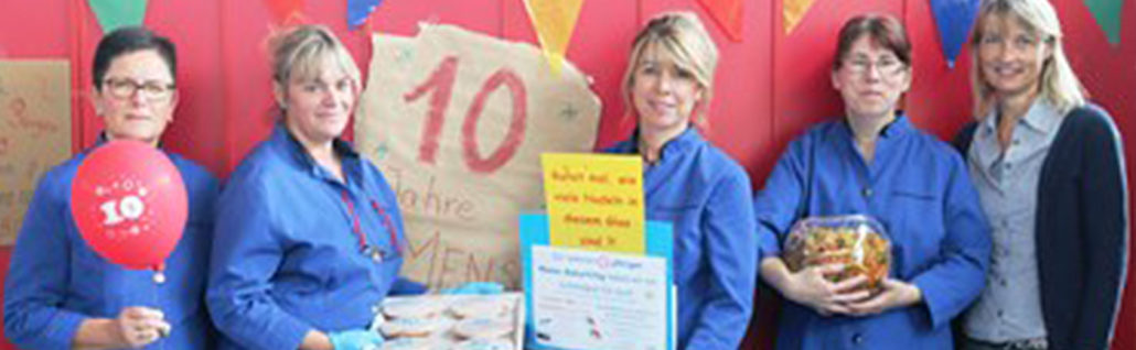 10 Jahre Mensa in der Henry-Harnischfeger-Schule in Bad Soden-Salmünster. „Wir haben eine tolle Woche hinter uns gebracht“, sagt das Team in der Mensa. „Wir hatten tolle Geburtstagsangebote wie den ,Pommes Day‘ und den ,Heinzel-Burger-Tag‘. Und noch dazu das ,Nudelrate-Spiel‘.“